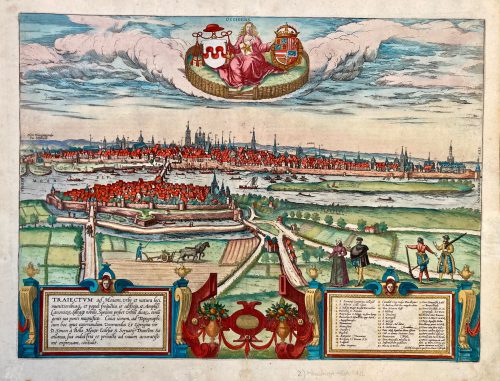 Groot folioformaat, kaartbeeld: 41x52cm. Verso: Stadsbeschrijving in het Latijn.