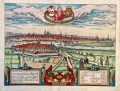 Formaat kaartbeeld: 37×39,5cm. Verso: Stadsbeschrijving in het Latijn.